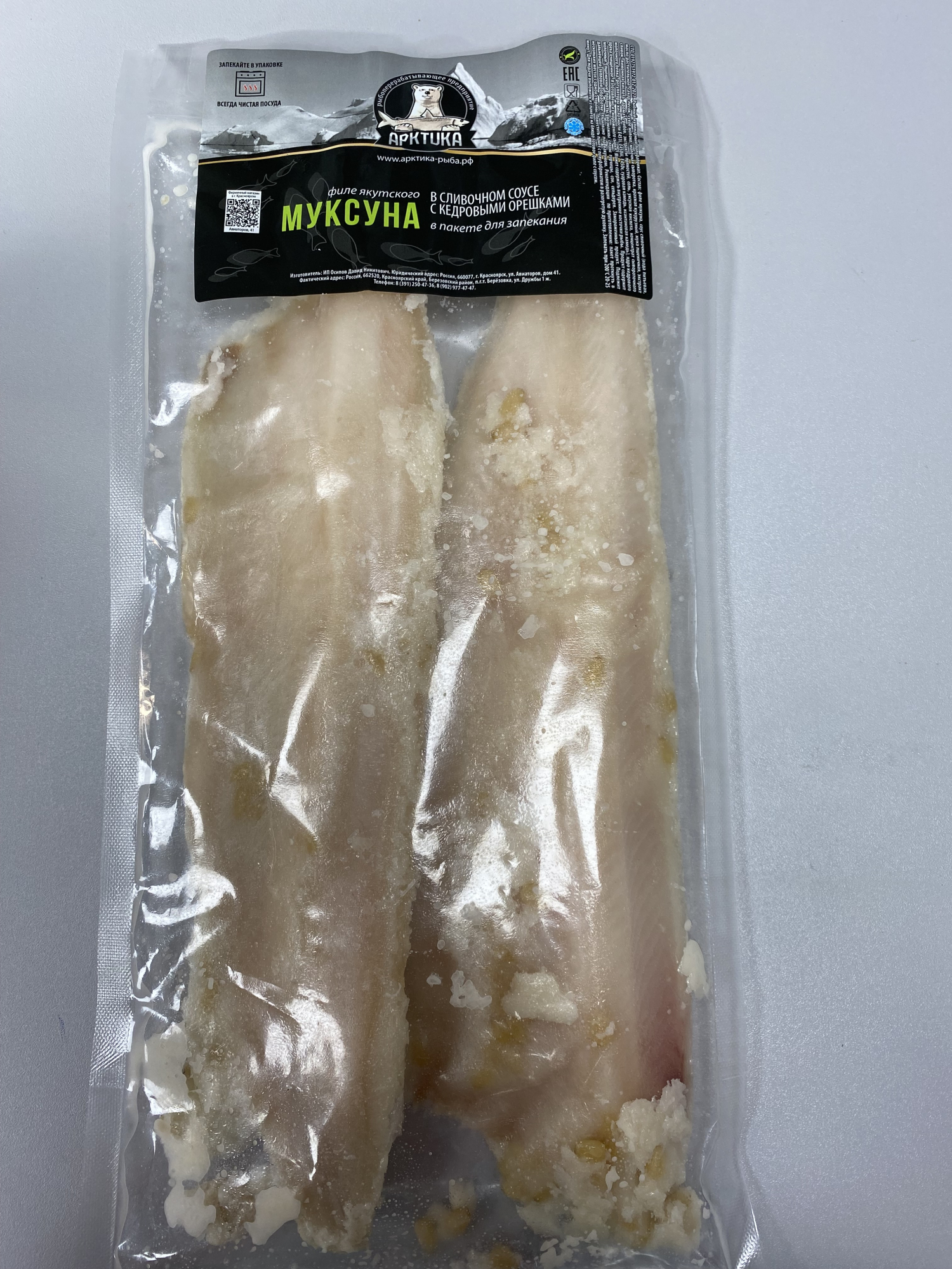 Филе якутского муксуна в сливочном соусе с кедровыми орешками