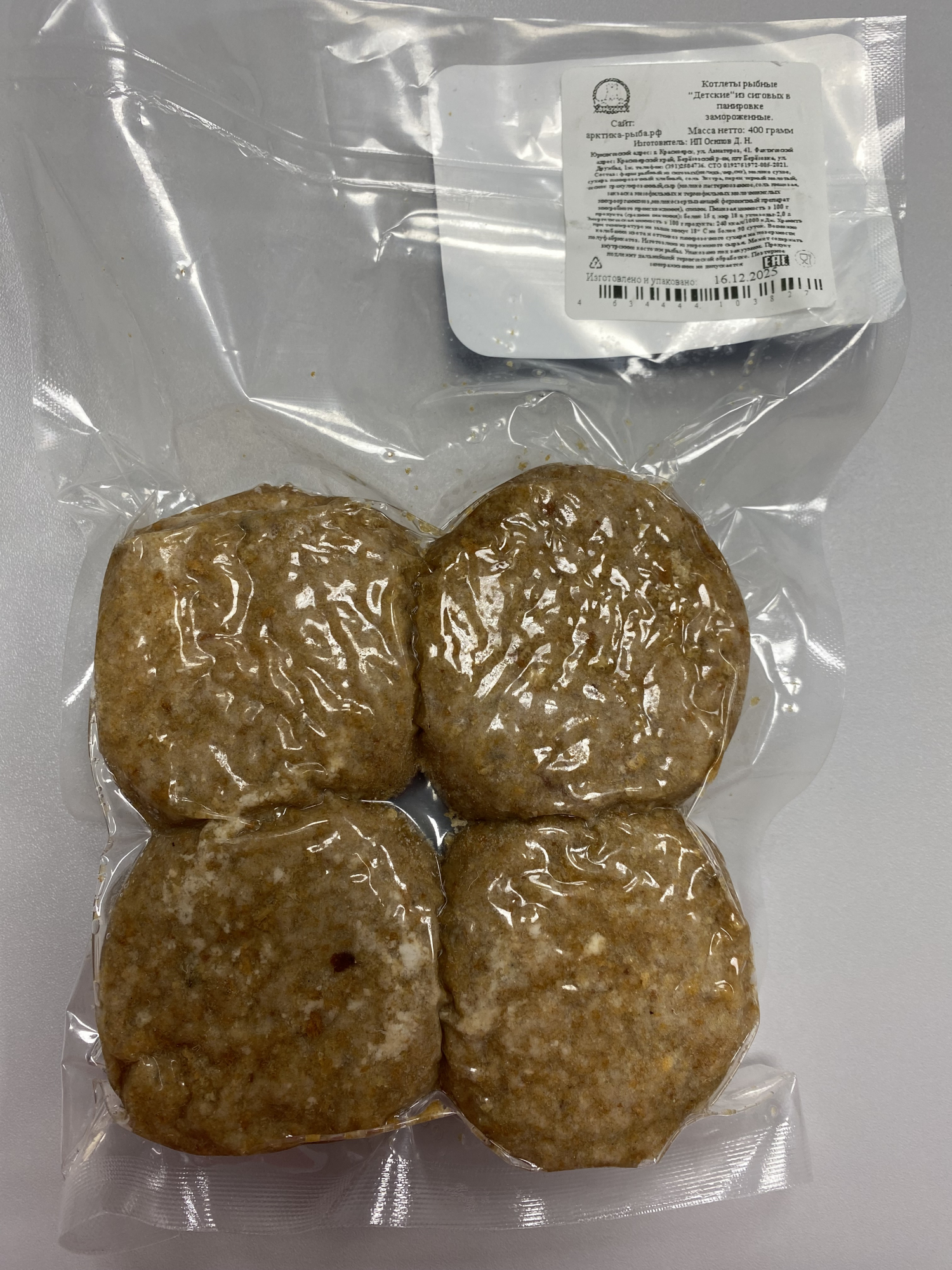 Котлеты рыбные из сиговых "Детские" 400 гр. в в/у