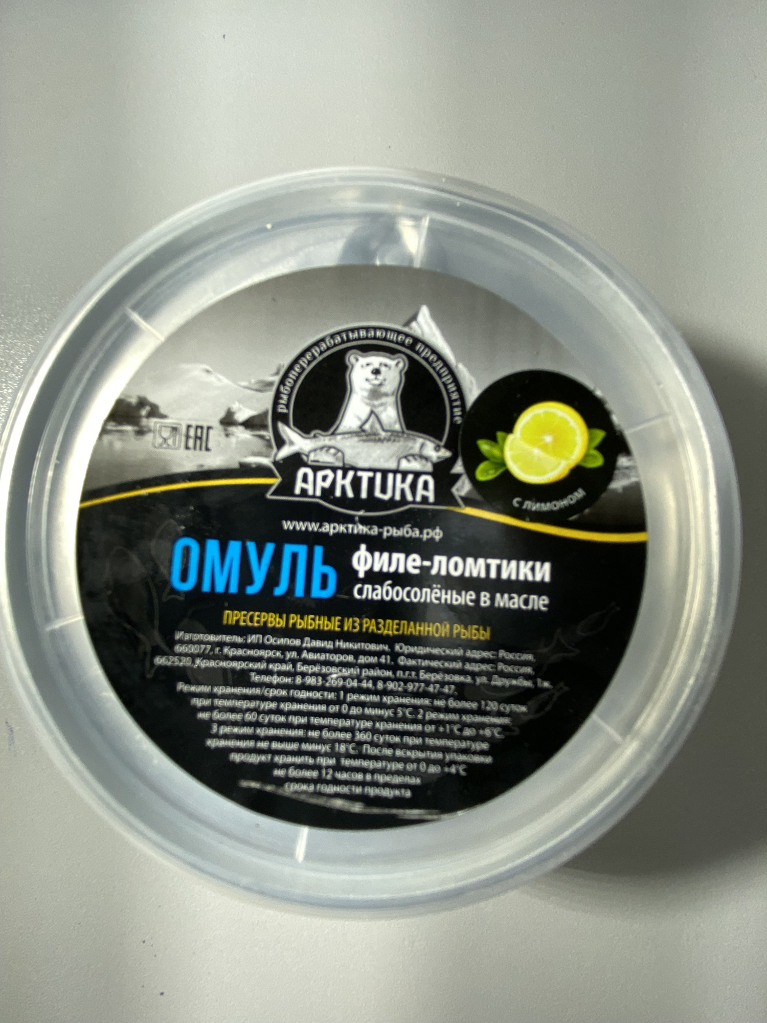 Омуль филе ломтики с\с в масле (с лимоном)
